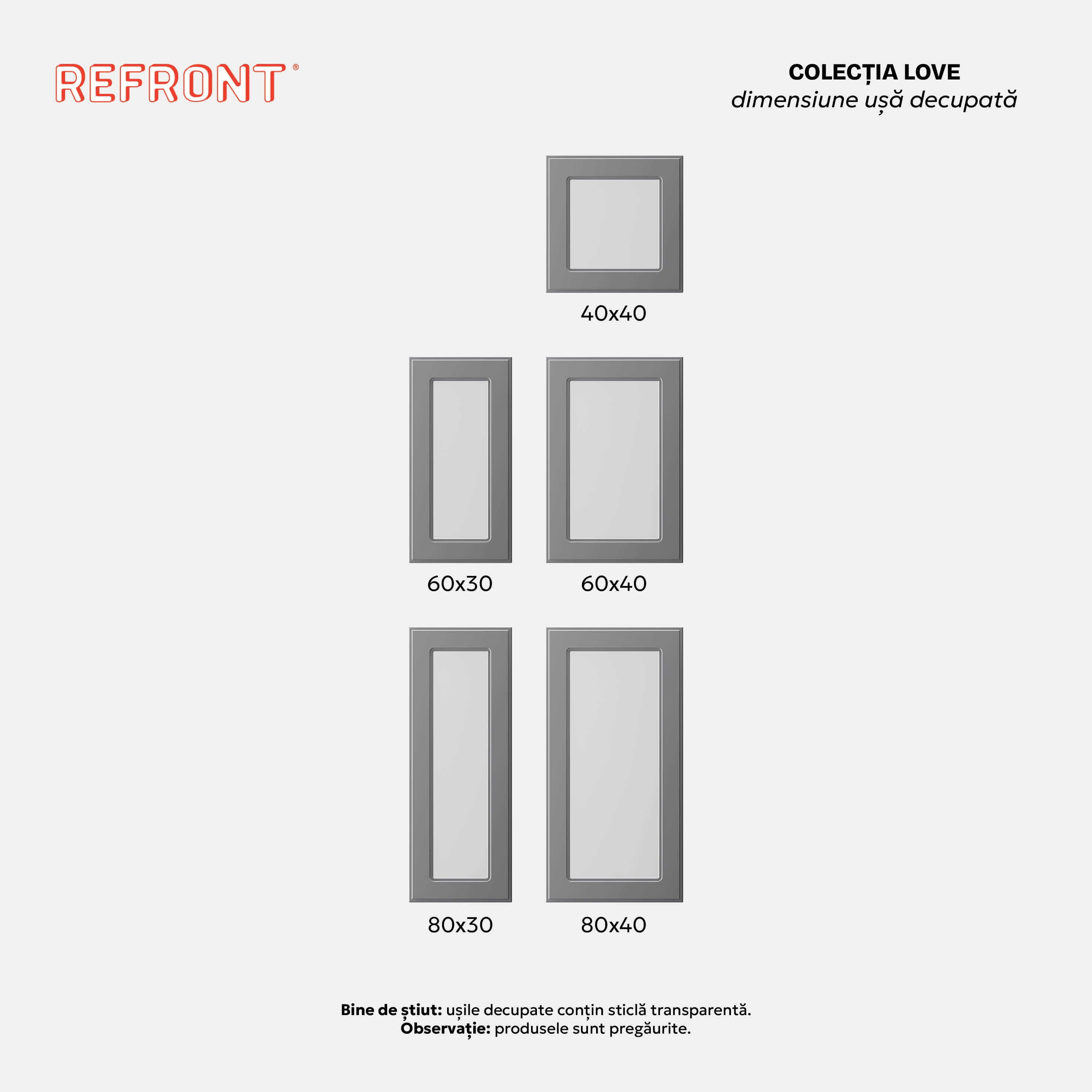 Culorile și designul ușilor Love au fost atent alese pentru sufletele romantice și visătoare. Love este visul tău devenit realitate dacă-ți place designul interior al caselor franceze. Și are grosimea delicată de 18 mm. Te vom contacta să-ți alegi modelul preferat de sticlă pentru ușă ca să se potrivească și mai bine în bucătăria ta.
