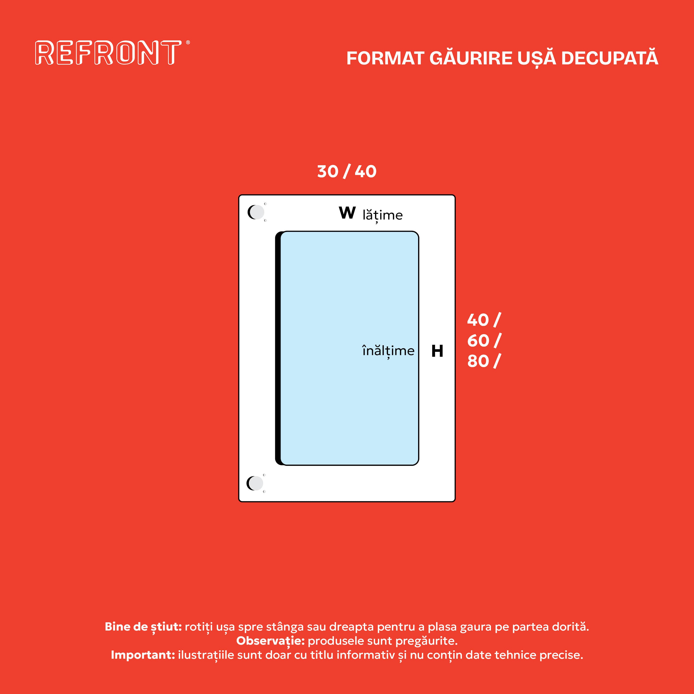 Recomandăm ca temperatura spațiului în care sunt montate ușile să fie între +10°C și +40°C și umiditatea aerului să fie sub 60% pentru a menține ușile în cea mai bună stare.