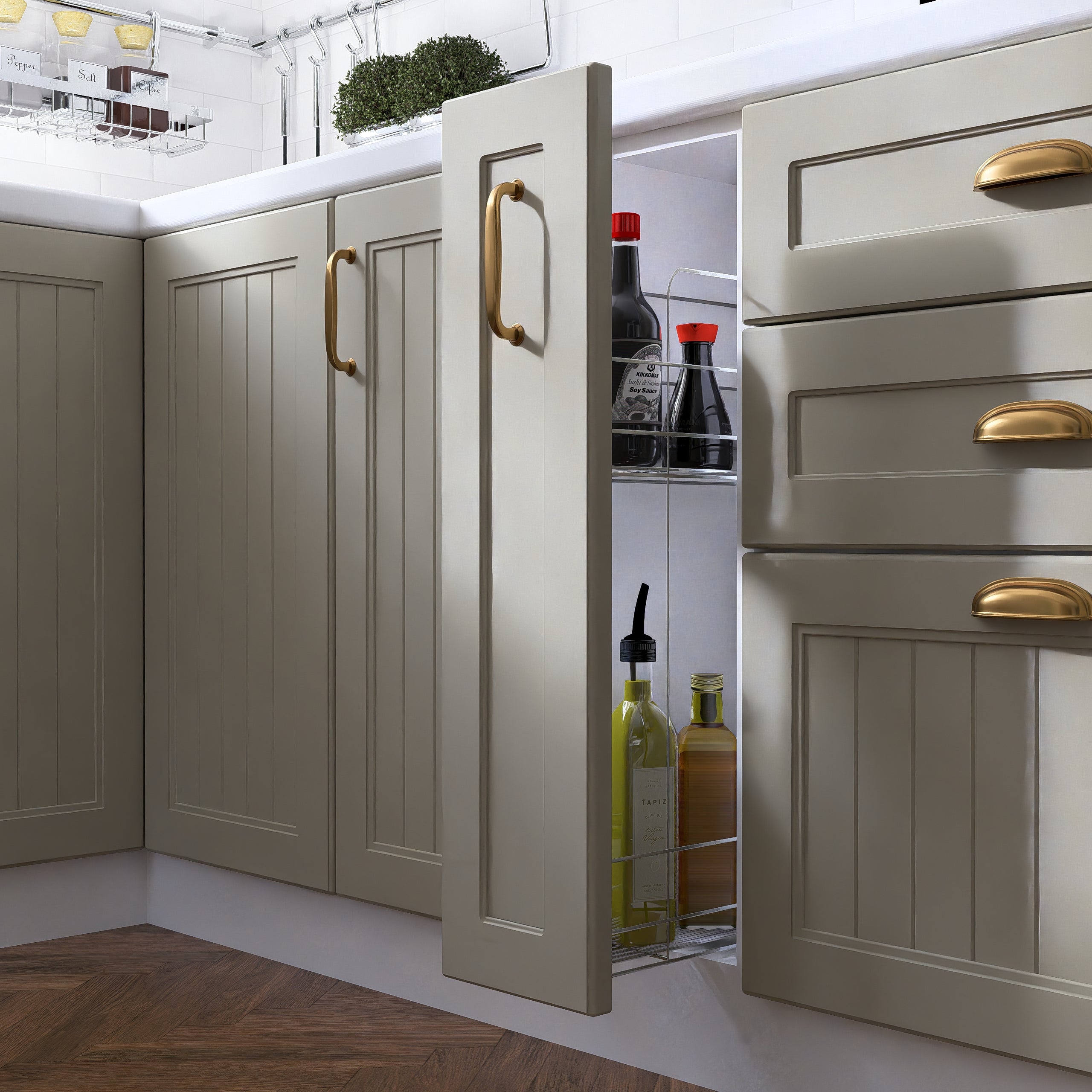 În cazul hotelor montate de sine stătătoare, sugerăm să montezi fronturile superioare la o distanță de minimum 5-10 cm de hotă pentru a proteja ușile de căldura emisă de plită.