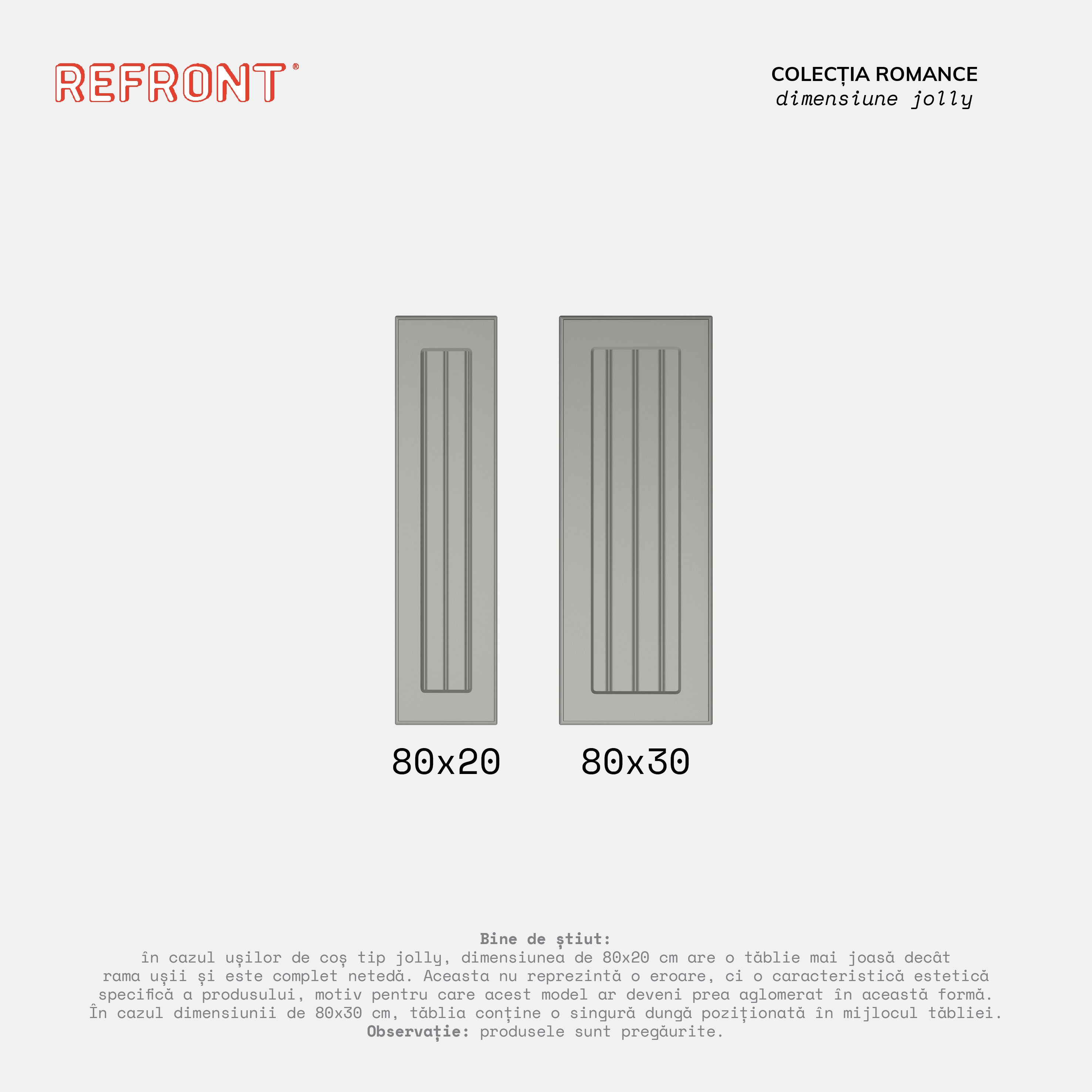Pentru a menține fronturile într-o stare bună, sugerăm să le depozitezi în spații închise la temperatura camerei pe plan orizontal și să te asiguri că suprafețele finisate sunt întoarse față în față pe o suprafață fără denivelări.