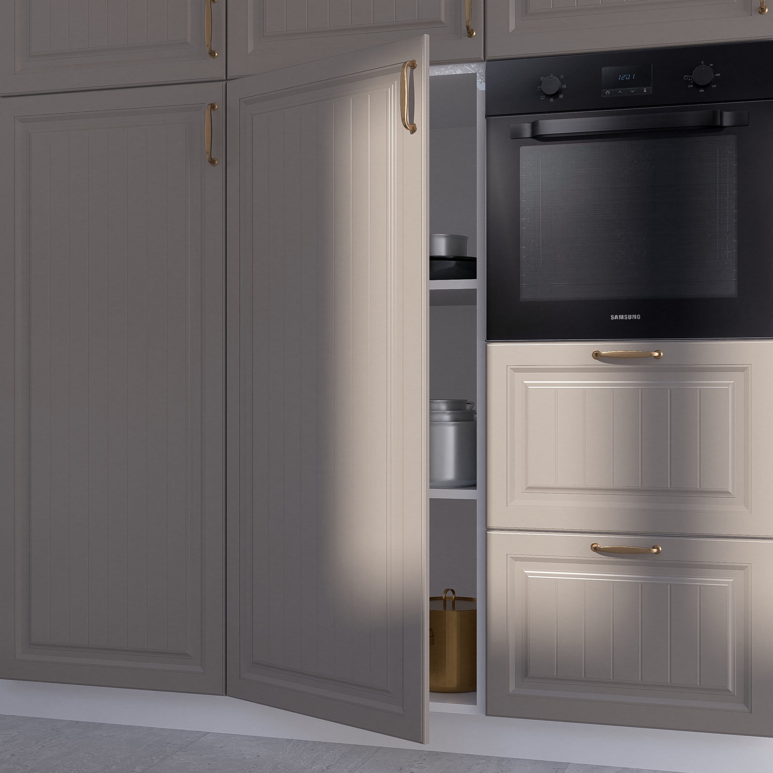 Inspirat din stilul provence, designul colecției Mother te duce cu gândul la o casă franceză plină de lumină și frumusețe. Fiind un model rafinat, noi credem că arată superb cu faianță decorativă mai accentuată. Ușile au o grosime de 18 mm pentru un look elegant.