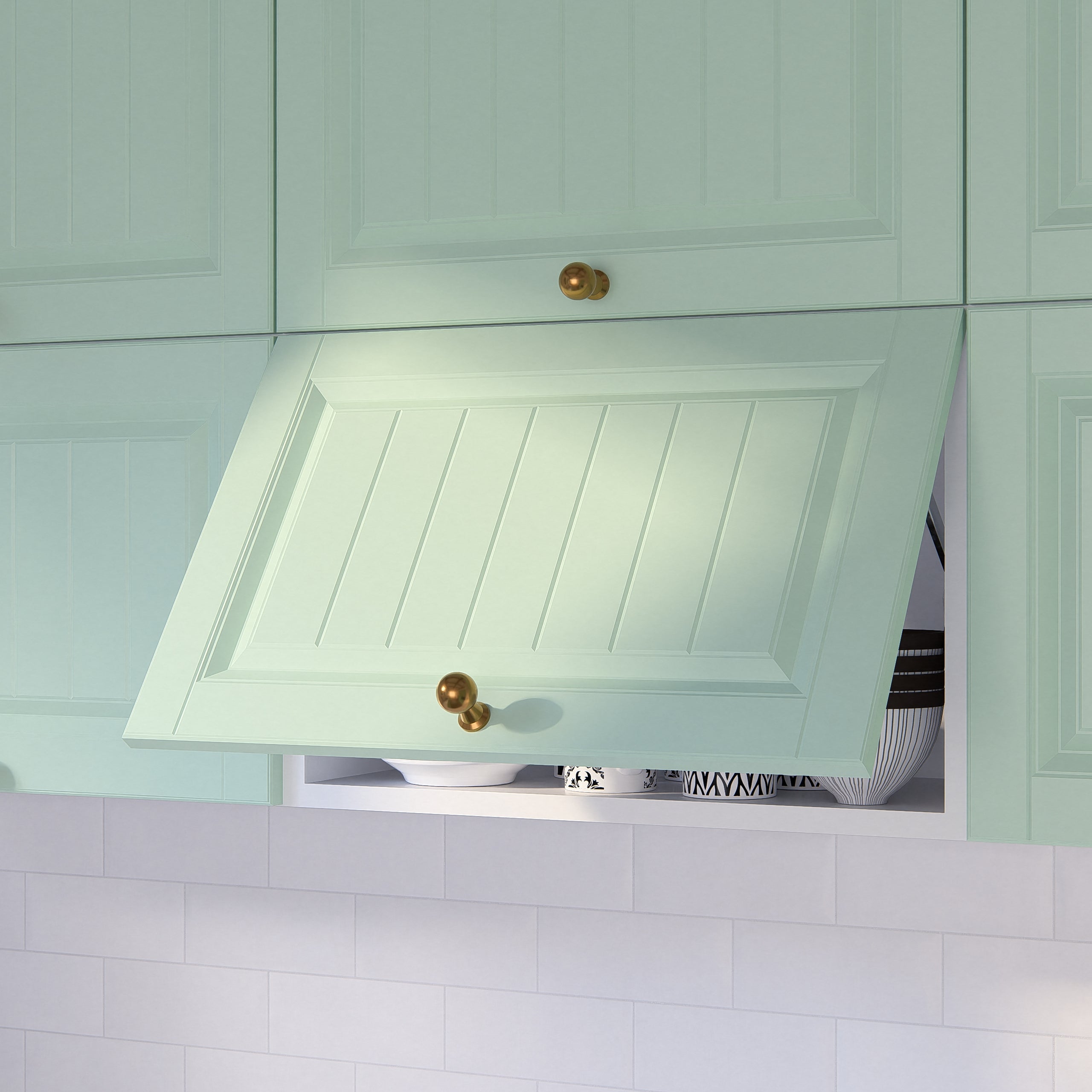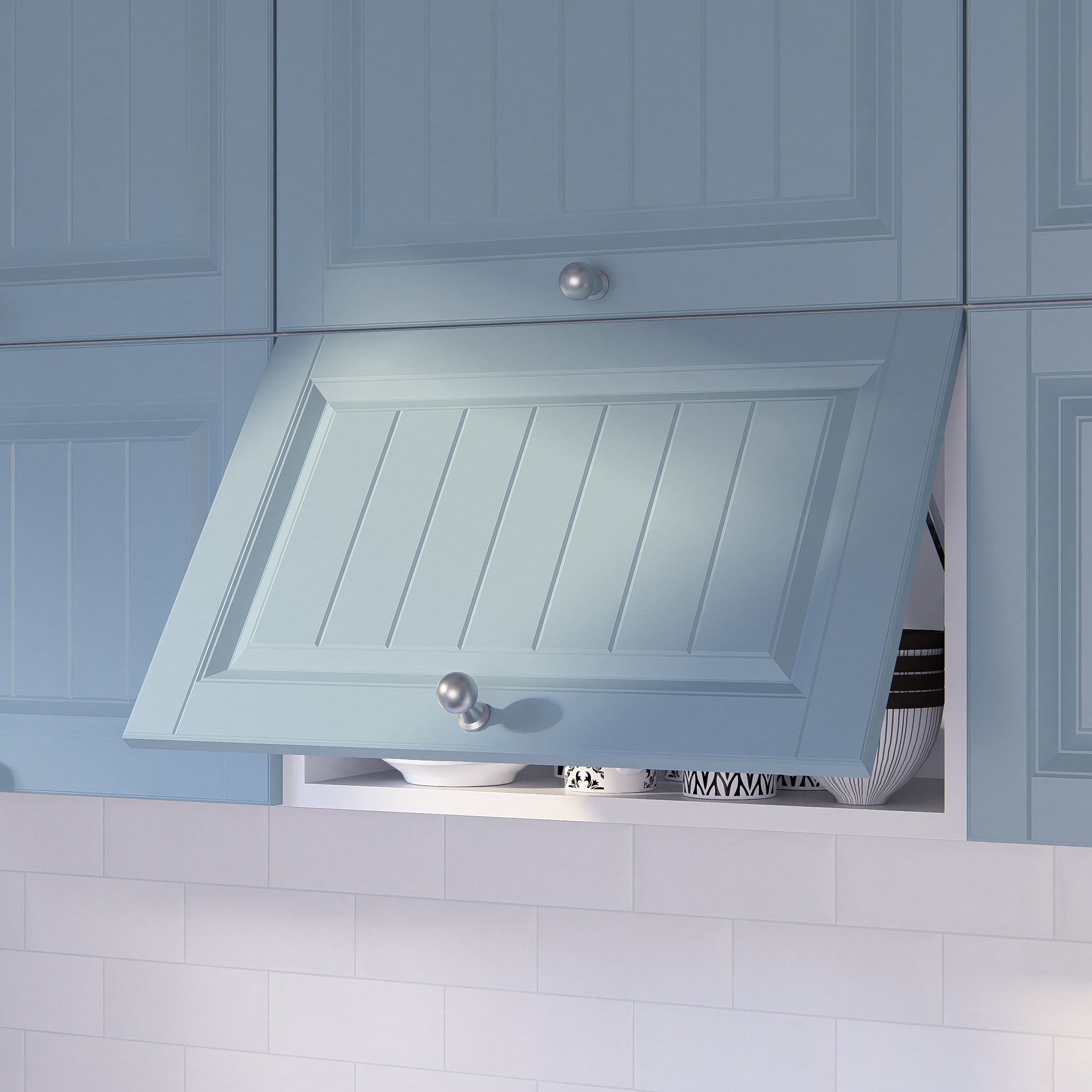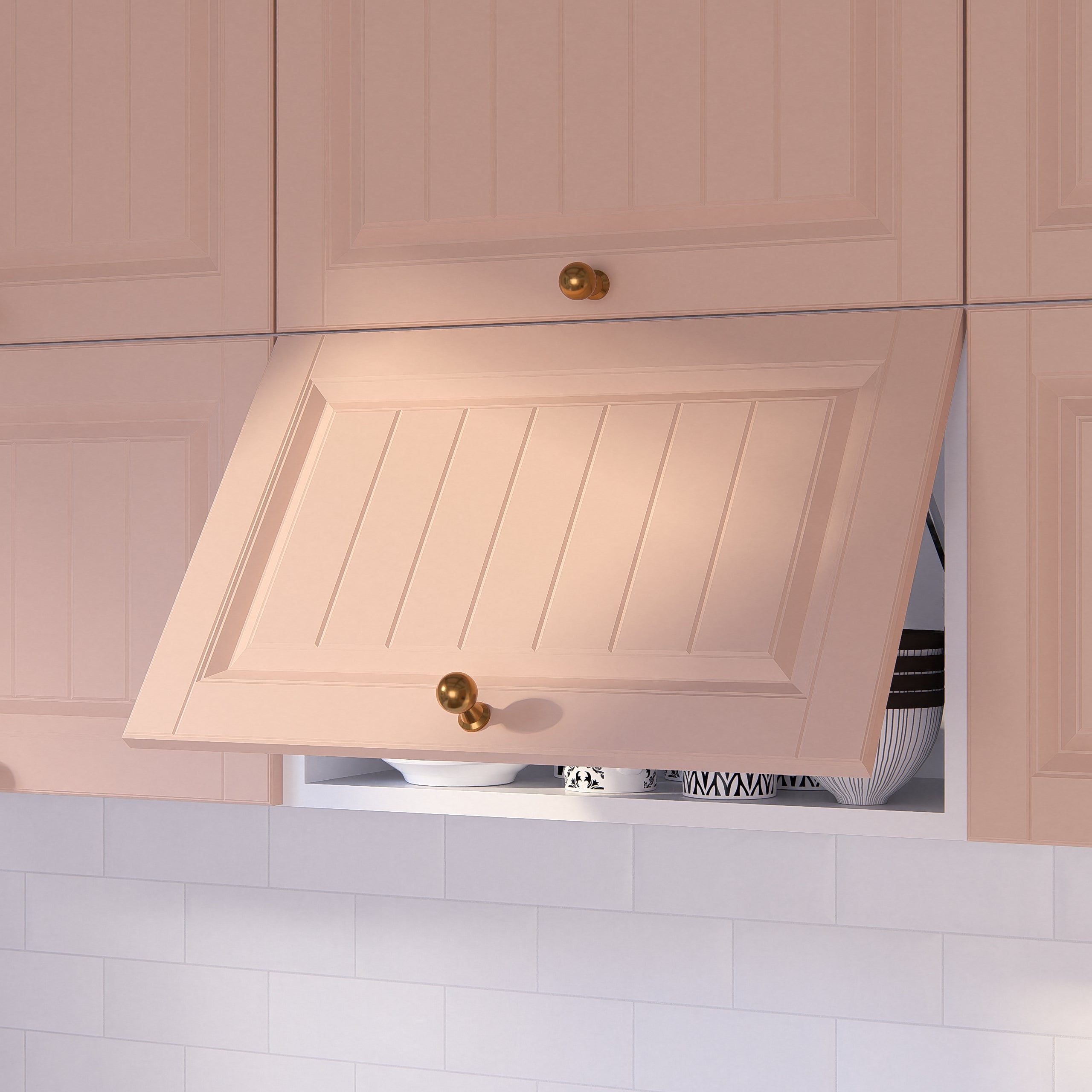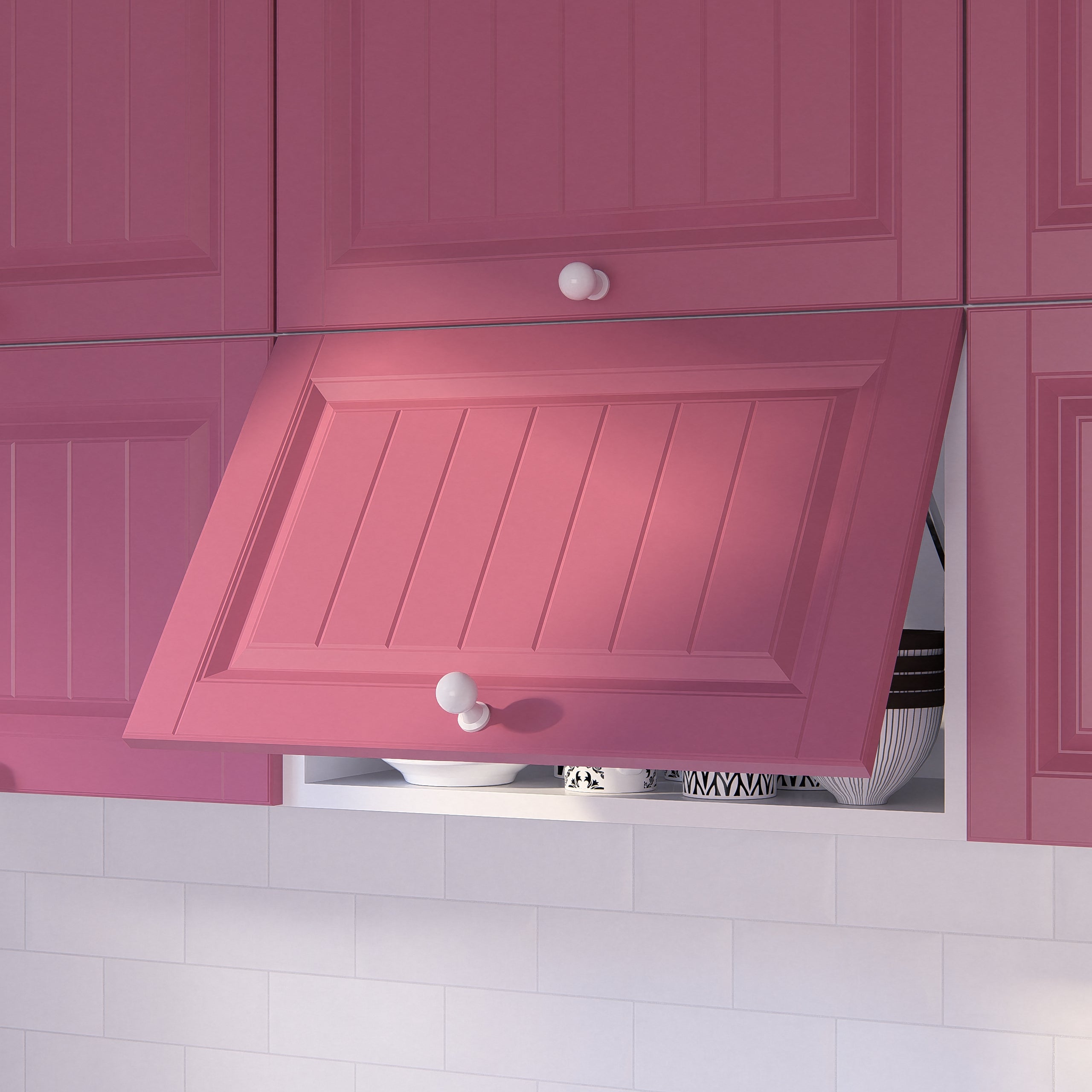 O simfonie armonioasă între clasic și modern inspirată din stilul francez provence. Culorile delicate îți luminează bucătăria și te fac să te simți ca într-o zi de vară călduroasă și plină de flori. Și ușile au grosimea optimă de 18 mm pentru a lăsa designul să strălucească.